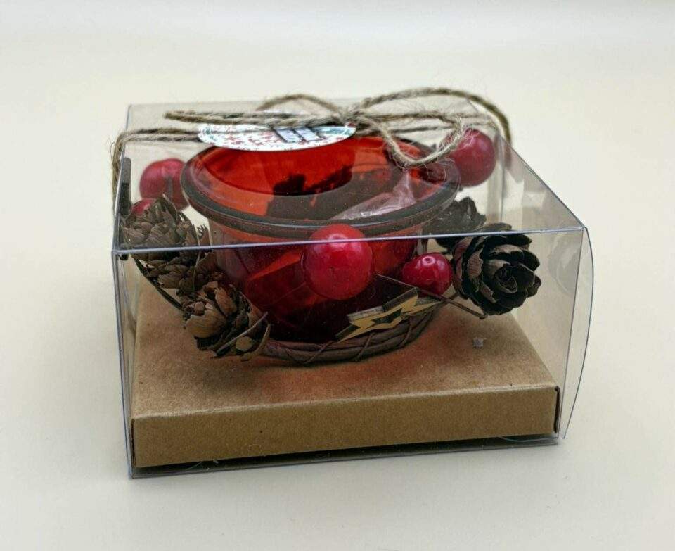 BOŽIĆNI UKRASI – SVIJEĆNJAK, DRVO/STAKLO, 6,5X5CM