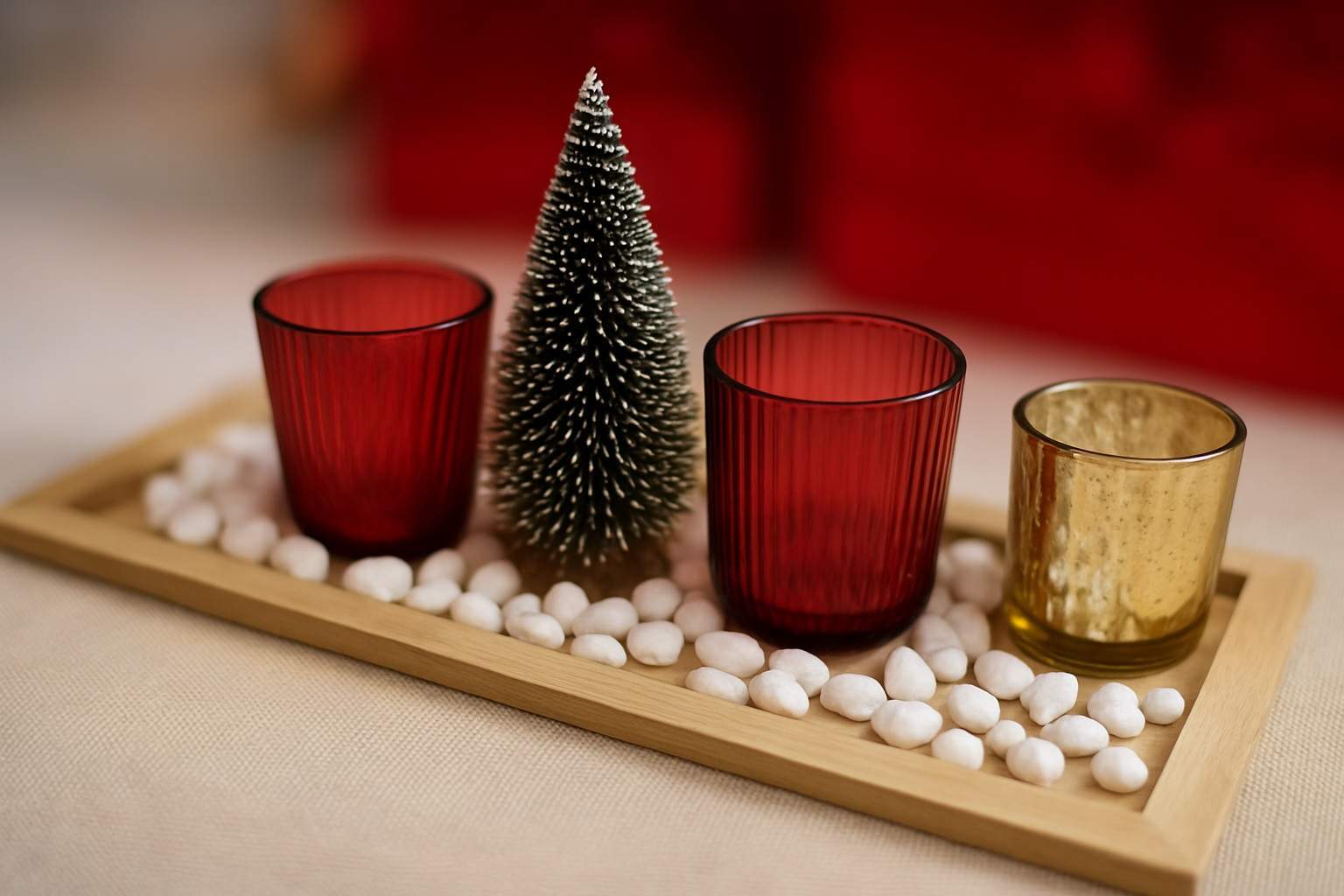 BOŽIĆNI UKRASI – SET SVIJEĆNJAKA SA TACNOM