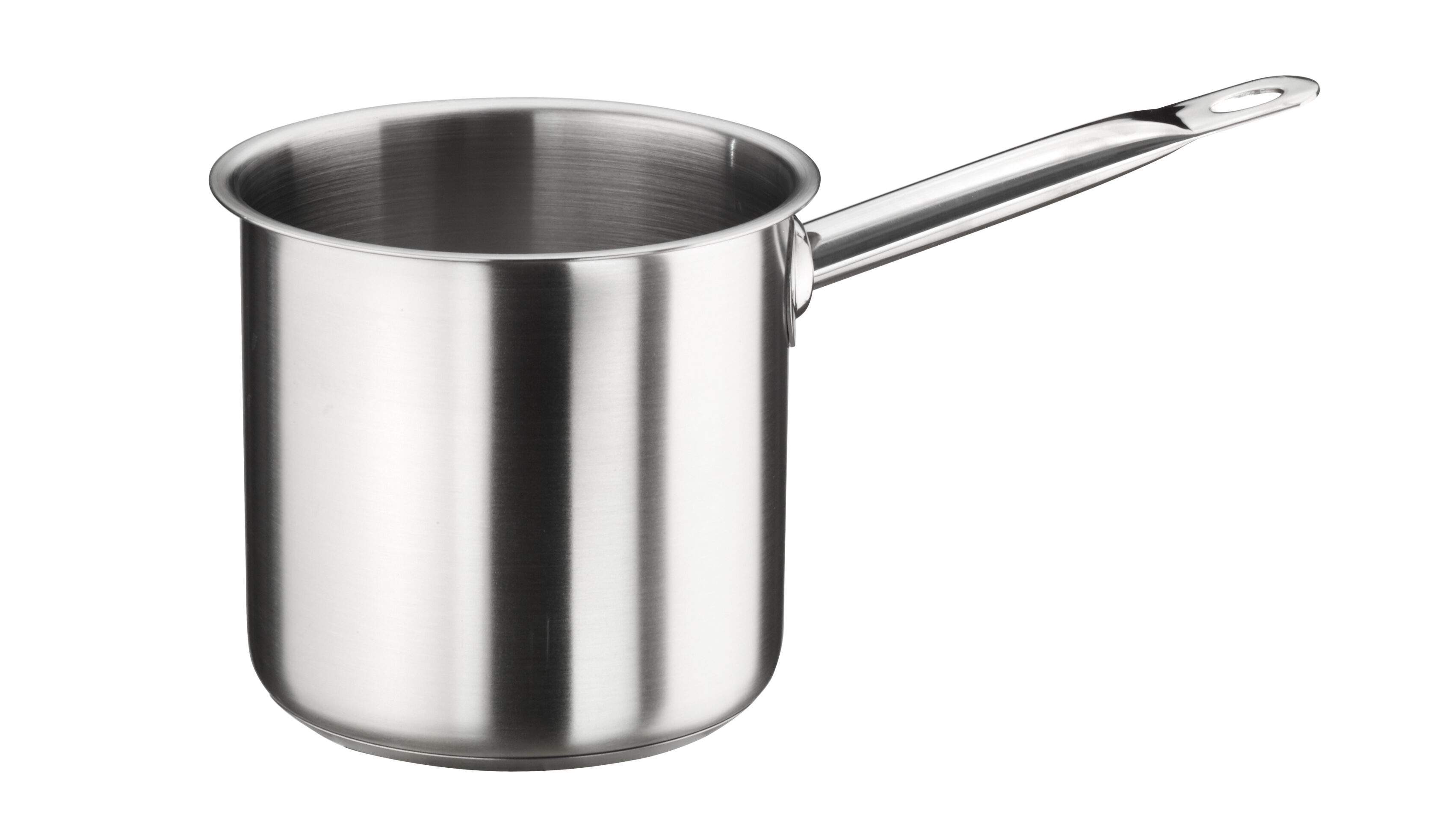 MASTER INOX 18/10 LONČIĆ ZA MLIJEKO FI 14CM, 2L, ručka s ojačanom prirubnicom, Sendvič dno (čelik/aluminij/čelik) s konusnim završetkom,Rub za izlijevanje bez kapanja