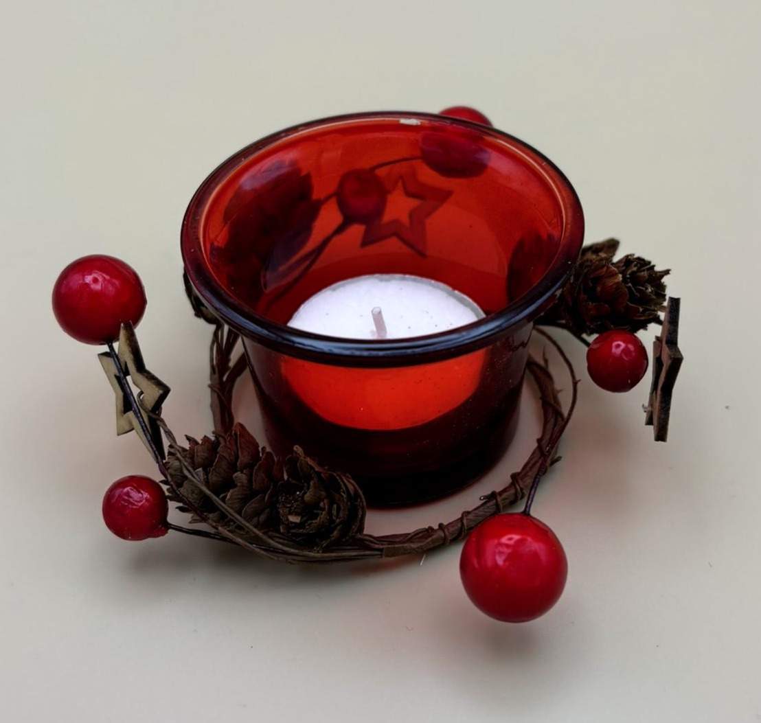 SVIJEĆNJAK SA SVIJEĆOM, STAKLO, CRVENI